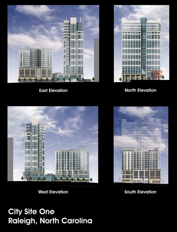 I am really not sure which I like better because I like both renderings, however the new one is growing on me. The white and blue colors will match well with the currently under construction RBC Plaza. Its modern design will flush well with Progress Energy’s second tower across the street. When looking at the older design, I feel that it resembles the architecture used in the buildings on NC State’s Centennial Campus, maybe taken up a few levels. I’m not bashing my alma mater’s campus but prefer the more glassy, water-like towers when put up against the stronger brick-red pair of mid-rises. Plus with the mini spires on the tops, especially the blades on the shorter building, there may be a potential for some very cool lighting at night.