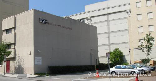 To incorporate the thoughts above, here is an idea that came about in a recent conversation with a friend on this topic. The picture above shows the M&F Bank parking lot on the corner of Hargett and Wilmington St. The lot is for employees only and has six spaces. I have nothing against the bank but I feel that this space should be given up and a deal cut for parking in the Alexander Square deck right behind them. This would be a perfect area for what I’m calling a Downtown Bike Pad.