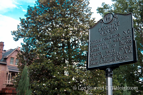 On May 12th, the newest addition to North Carolina’s historical marker army was unveiled for the world to see. This particular one will give pedestrians, and yes drivers too, a brief history lesson about the Executive Mansion that sits on Burke Square. The marker reads: