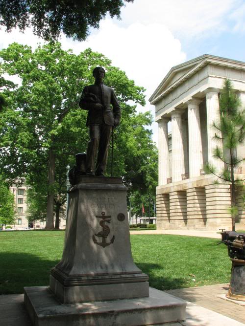 The Ensign Bagley statue on the grounds of the North Carolina State Capitol is not even mentioned in the Walking Tour of the popular informative website called the Raleigh Connoisseur on all things relative in Downtown Raleigh.