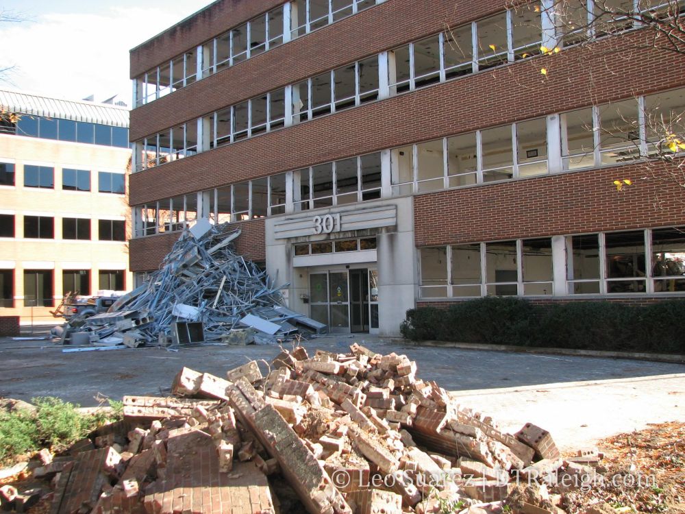 301 Hillsborough is slowly coming down to make way for “The Hillsborough”. This project is brought to you by the same minds backing The Quorum Center. Click here for some background information.