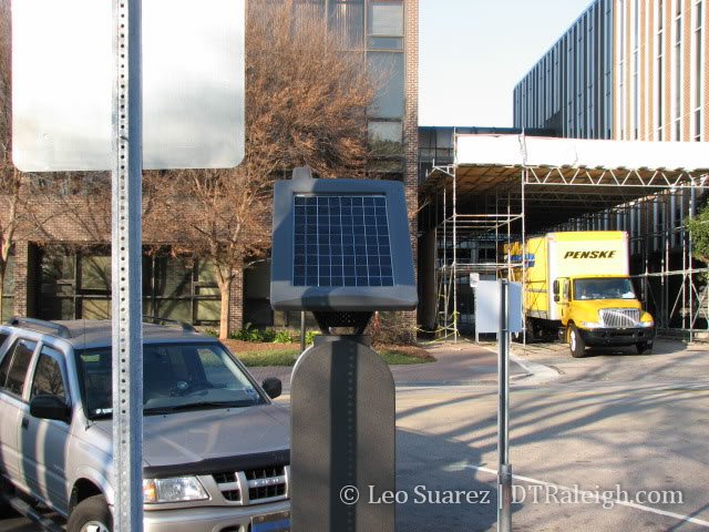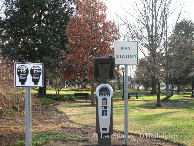 GreenCon is a new label that I want to introduce highlighting any ‘green’ efforts going on around downtown. The latest one that I stumbled upon were the new parking meters on the 200 block of West Hargett St. Here is some background information about these meters. We could see more of these pay stations instead of parking meters in the future.