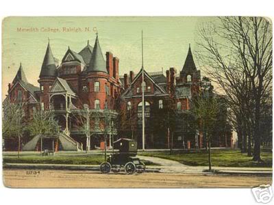 In Google maps you can clearly see what appears to be the driveway to the old Meredith College building that was located on the corner of Blount and Edenton St. It has been there for some time but now it has been scraped away for more parking spaces. We discussed this building in a past post and a regular commenter shared a link to a postcard with a photo of the building.
