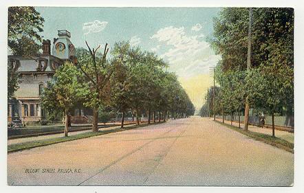 Getting back to the Meredith College Building: When that institution moved out Hillsboro St in 1925, the Blount St building was sold and re-opened as the Mansion Park Hotel. During the time of the hotel’s occupancy the brick piers at the driveway entrances were erected. Many years later the state bought the property and used the building as offices until about 1967 when it was demolished >> what a loss! Indeed, before the state began razing the mansions along Blount, Wilmington, and Halifax streets in the 1960s, that area was virtually intact, albeit a little seedy, but neverthess, what a sight to behold it was!
