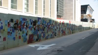 Almost six months after the demolition of the old NC DOT building on McDowell St., work on the Green Square project is finally getting started. It is nothing exciting yet but it is better then a pile of dirt or a huge, vacant hole in the ground (should I give examples?). Behind a long green monster wall, it looks like foundation work is taking place at the moment.