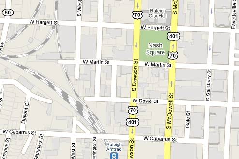 Next time you are walking in the area, look for the tracks and imagine that at one time passenger trains were unloading people right into Nash Square and a few blocks from Fayetteville Street.