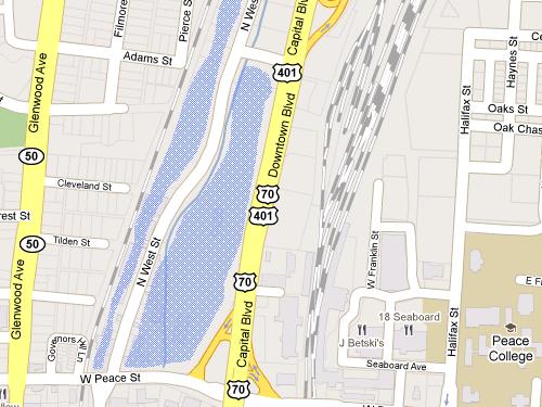 […] located on the area bounded by North West Street, Peace Street and Capital Boulevard, was once a minor league baseball field? Today the area, where development is limited by the fact that it sits on a flood plain, is used […]