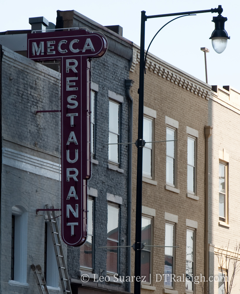But presenting this “menu” is probably the real touchy part of this conversation. They definitely don’t make signs like they used to (see the Mecca picture) and in my opinion, you’ll hear a big outcry against anything that’s too bright and bold. If left unchecked, a busy street would be overwhelmed with large, bright signs competing with each other to get your attention. So we need to reach a balance here. At the bottom of the Downtown Raleigh section of the comprehensive plan are some suggested guidelines for signage: (page 49)