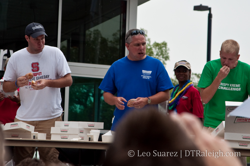 Contestants shove doughnuts in their mouths during the Krispy Kreme Doughnut eating contest.
