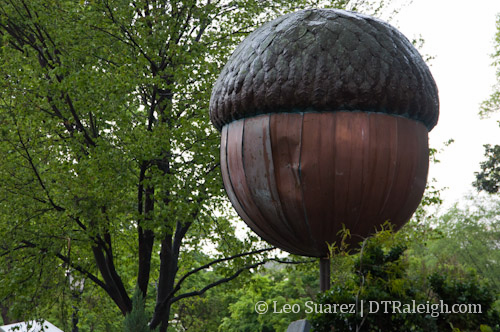 If you didn’t know already, the acorn in Moore Square was damaged during the tornadoes in April 2011. A few weeks ago, the council approved some money to repair it so that it could be used at First Night, downtown’s New Year’s Eve party. Could it actually have been a good idea to leave the damage in the acorn as a way to remember the tornadoes of 2011? After the trees in the cemeteries are finally cleaned up, the acorn would have been the last thing to remember this event by.