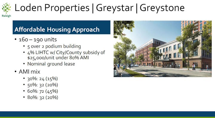 The first phase would be the affordable housing component. With the city driving this project (owning the land) it’s not surprising that, given the current state of housing, this is the first to be delivered. You can see the breakdown of units and income requirements in the additional slides below as well as the proposed location of this new building. The homes would be built mostly along Bloodworth Street at the corner with Martin Street.