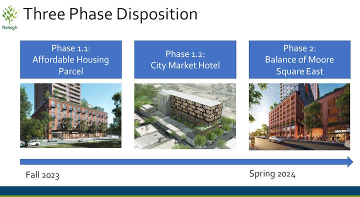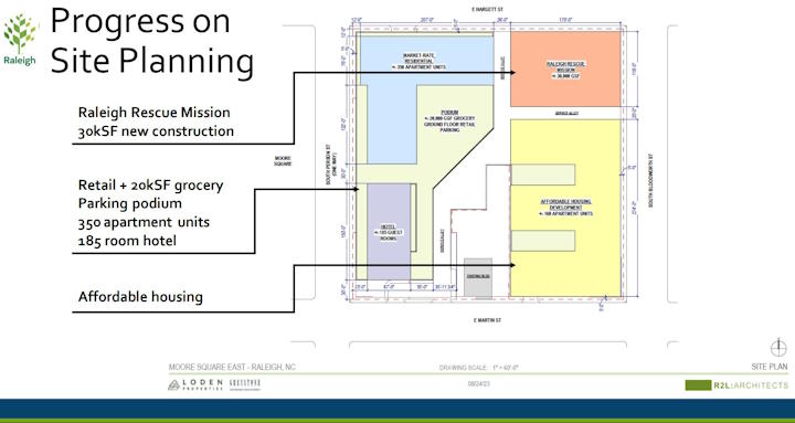Embedded above (or watch on YouTube) is a clip from the October 3rd council meeting that has an update to the Moore Square East and Moore Square South plans. The quick highlights of the update are: