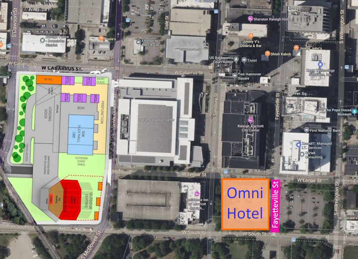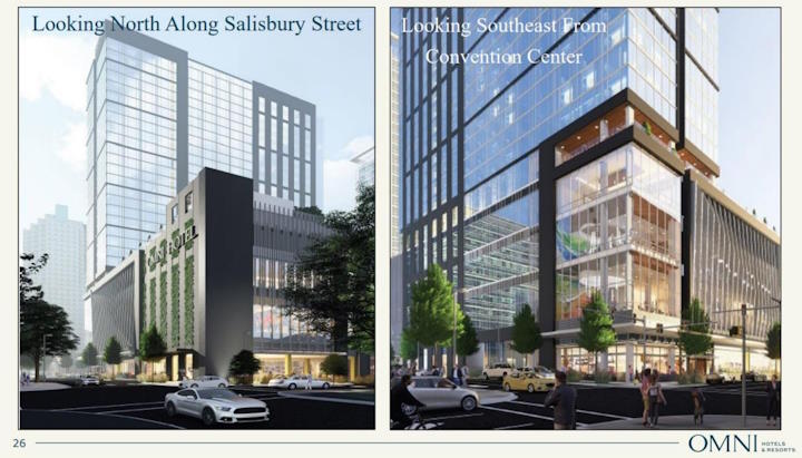 - Build a 550-room Omni Hotel between Fayetteville and Salisbury Streets