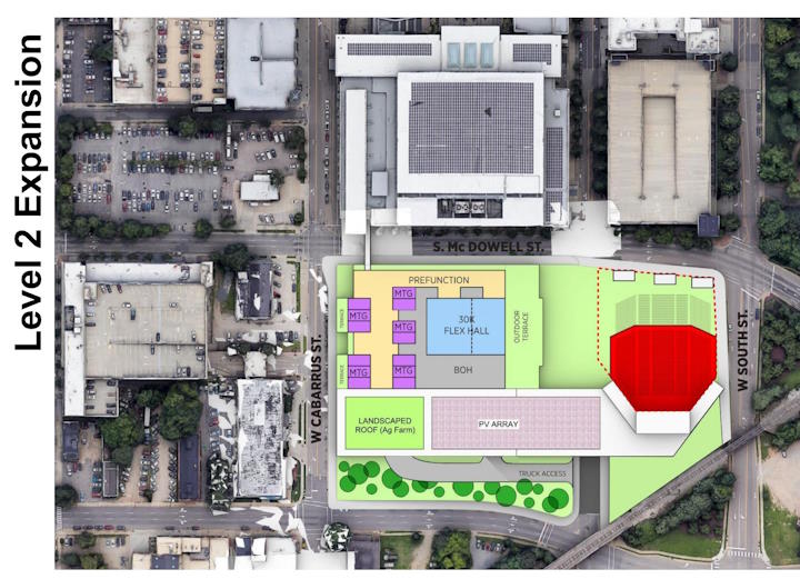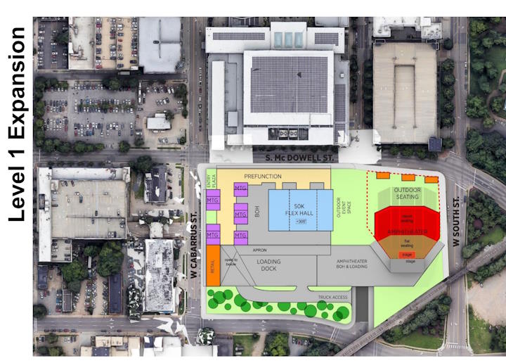 - Build more convention space on the block where the current Red Hat Amphitheater is located