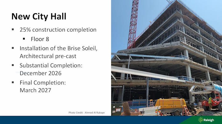 The new city hall, also known as the new Municipal Campus, is 25% complete. Construction has been ongoing all year and is expected to complete in March 2026. For more about it and fantastic updates straight from the city, you can check out this page here: City Hall Project Updates