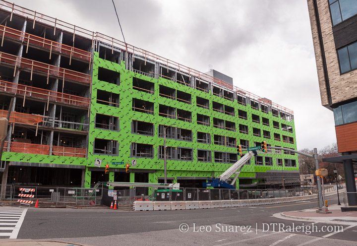The Origin hotel on Morgan Street is close to topping out. Blocking a substantially large parking deck, the hotel creates a nice bookend to Glenwood Avenue.