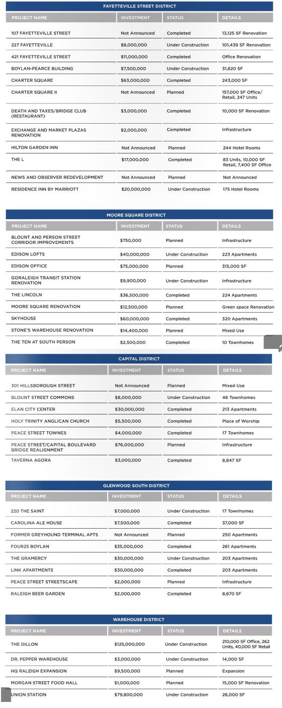 I’m pulling out some interesting factoids from the 2016 State of Downtown Raleigh report. There is over $1.1 billion worth of completed, under construction, or planned developments in downtown Raleigh. What does that look like? Below is the list.