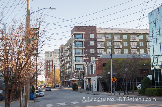 At West and Hillsborough Street, you can already see the empty spaces ready for new uses. The mid-1900s storefronts along Hillsborough and the almost empty block at the corner of Hillsborough and West have been waiting for years. Would you consider this Glenwood South? I feel like this intersection doesn’t belong to either Glenwood South or the Warehouse District so the revitalization of those districts haven’t hit here yet.