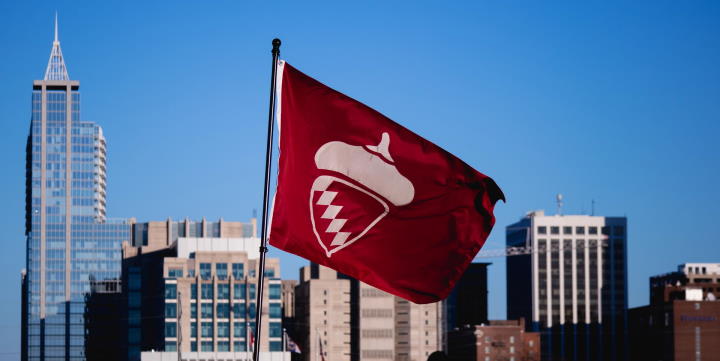 A: We wanted to stick with the themes expressed on the historic flag: that Raleigh is known as the City of Oaks and is named for Sir Walter Raleigh. The acorn embodies the City of Oaks theme. The diamonds are taken from Sir Walter’s coat of arms, which is a red shield with five silver diamonds in diagonal. In the new design we reuse the colors from the coat of arms and the historic flag. We wanted to retain the essence of the historic flag, while boiling its devices down to a simple, eye-catching emblem.