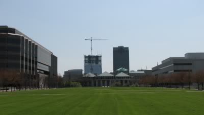 I took a walk around there this past Saturday and there is plenty of green space for some sports action. The weather was great for a game of football, soccer, or whatever sport you prefer. Maybe I just came at a bad time, but 2:00 pm seemed like an ideal time for people to show. The grass is certainly greener then your yard and the views are pretty cool. There are benches, water fountains, and plenty of parking. There is just no human presence.