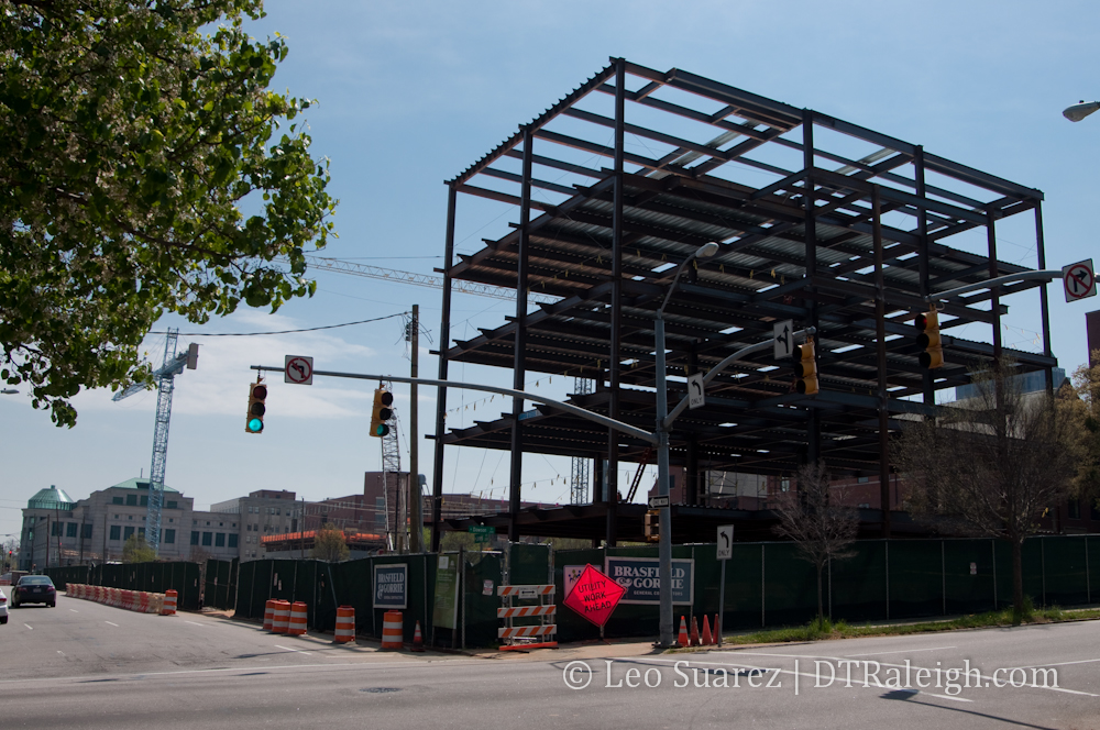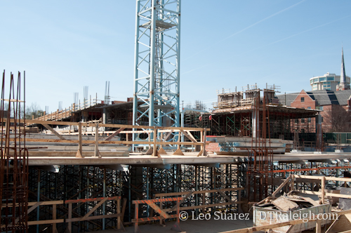 The Wake County Justice Center expansion site is buzzing with construction activity. The base of the future three tower cranes can be seen in this picture. Click for a larger view.