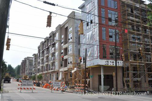 I want to mention The Hue condo building and how it may be a key boost in residential density in downtown. The Hue and its neighbors, Park Devereux and The Dawson, form a cluster of people living close to each other unlike any other area. According to the Downtown Raleigh Alliance, these three buildings have 319 units between them. Spanned across only two blocks, this will be the densest residential area when The Hue opens. (dense by Raleigh standards) Putting their look and architecture aside, I think I like what has been built here. The five to seven story buildings do not feel overwhelming and create a more livable environment compared to a corridor of twenty plus story towers. If another condo building in the seven to ten story range was built across the street from The Dawson, we may have a condo neighborhood district forming.