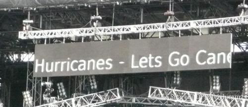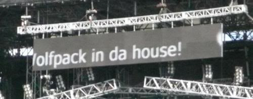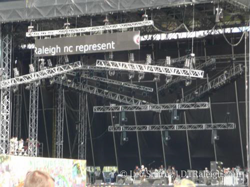 These are not exactly downtown Raleigh related but since I’ve got nothing new and need a few days to get back into the swing of things, I thought I would share this from my weekend. Both of the main stages had a large LCD screen above them that scrolled text messages that you could send in. While trying to shamelessly plug DTRaleigh.com (yes, I know, unsubscribe now) and grab a picture of it above the stage I actually ended up catching other Raleigh related shout outs.