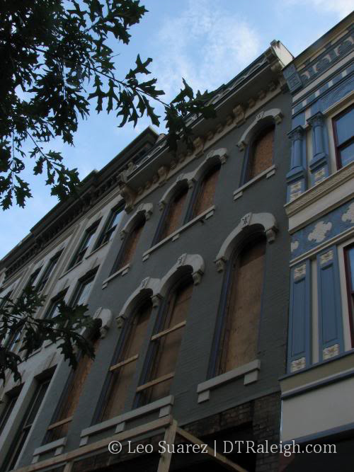 The Mahler and Carolina Trust buildings on the 200 block of Fayetteville Street are under heavy renovation.