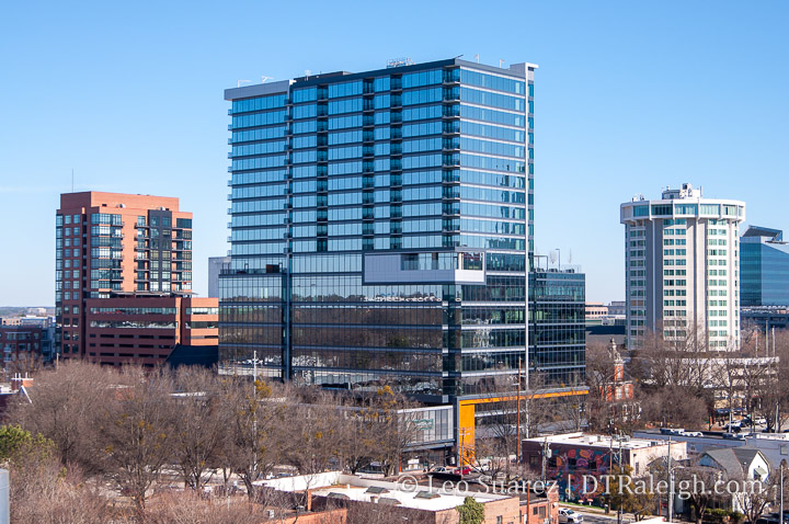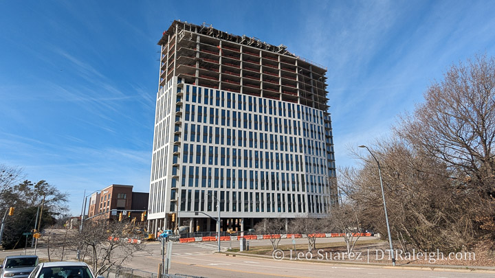 The 400H building is now complete. Maybe not technically but as far as I’m concerned as a downtown regular it is. The sidewalks are open and recently the Downtown Raleigh Alliance posted that residents are moving in. Now we wait for some ground-floor shops.
