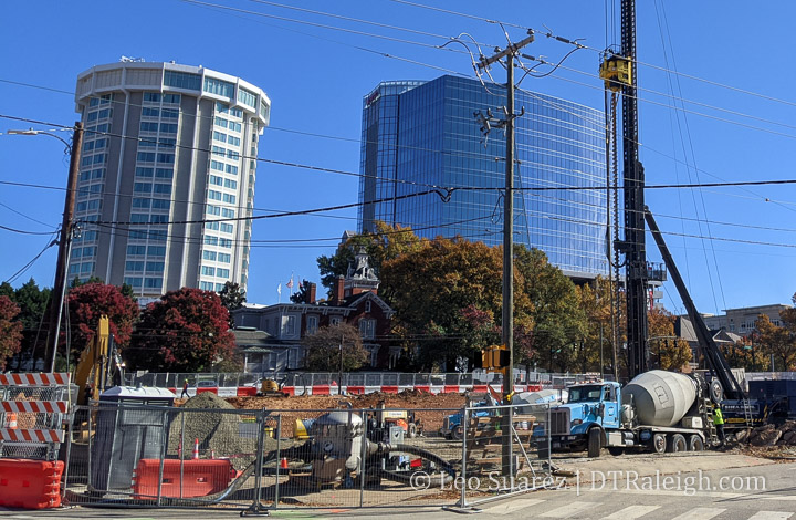 Shown in the foreground of the above photo, a new hotel is coming to the corner of McDowell and Davie Streets. The building will have two brands which include a Hilton Garden Inn and Homewood Suites. That’s 259 additional rooms within walking distance to Fayetteville Street, the Raleigh Convention Center, and the Warehouse District.