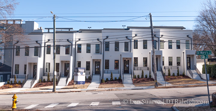 The Cameron Crest townhomes on St. Mary’s Street are looking sharp now that they are completed. These are million dollar townhomes that pack a lot of space in their small looks here in the photo above.