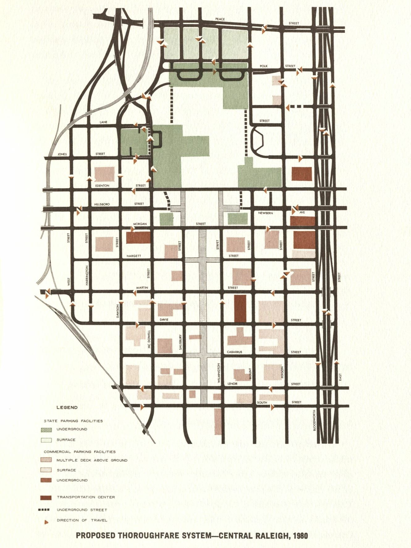 It almost seems like the plan was trying to correct a perceived problem with how Raleigh was originally planned and how that plan could no longer accommodate our city’s current and future growth. The original plan for Raleigh, the William Christmas plan, consisted of a grid of streets with five main squares. This plan is still mostly intact in downtown leading up to the 1960s.