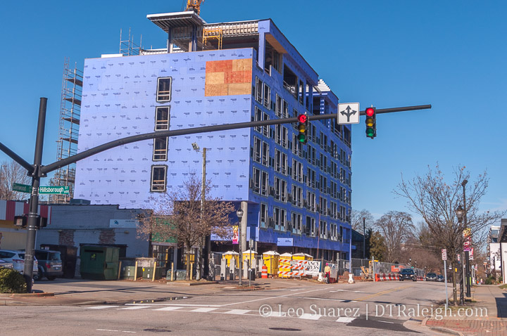 Block B plans for a residential building over retail, described in more detail in this August 2020 post. Block A also has fencing around it as well. Residential is still a hot commodity in Raleigh so leading with this development over the hotel portion makes sense for this year if that’s what we’ll see take place.