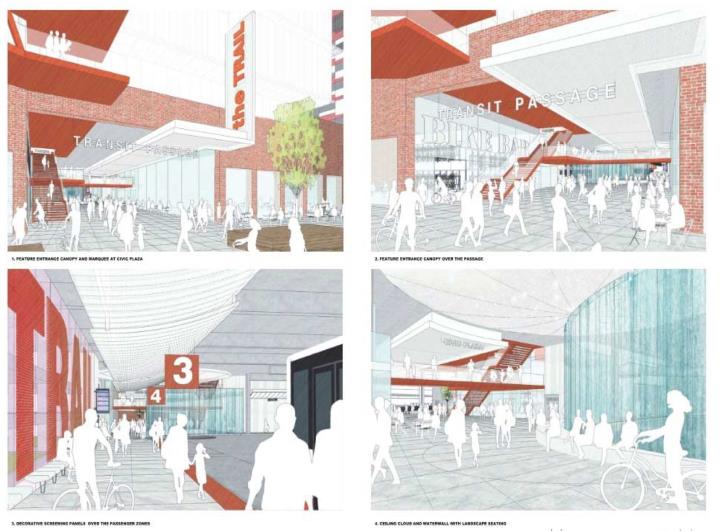 There’s a lot of function shown here along with elements that could elevate the entire transit station into a destination. If you look at the rendering with towers on top, this could be a pretty nice hub of activity at all times of the day, on weekdays and weekends also.
