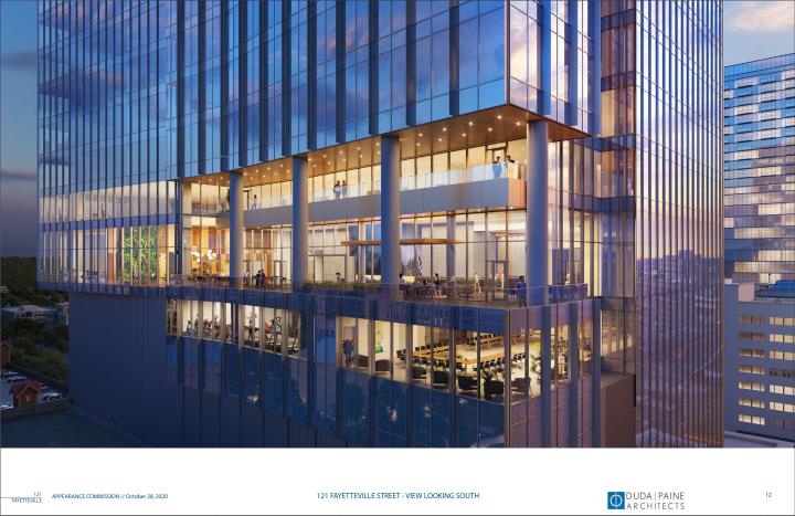 Retail/restaurant spaces along both Wilmington and Fayetteville Streets.