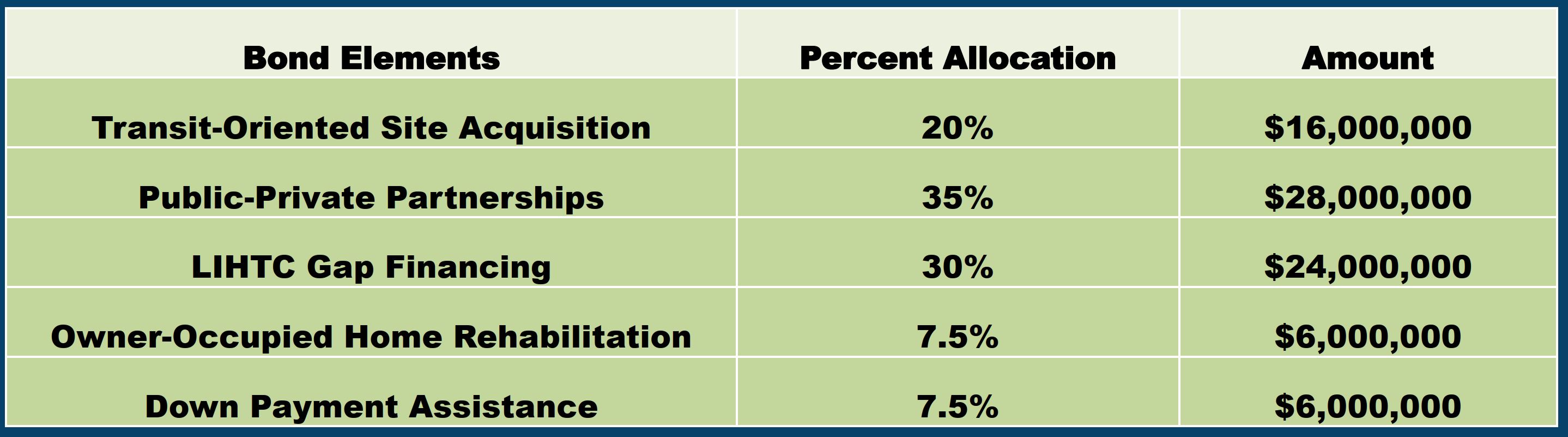 With voter approval in November, $80 million would be used to fund affordable housing in a variety of ways. From a July 2020 update, the breakdown of those funds are shown below.