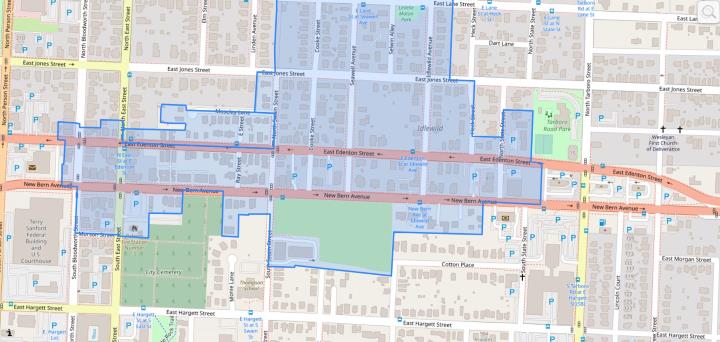 Loosely defined, for this Walk post, I’m focused on New Bern and Edenton Streets between Tarboro and East.