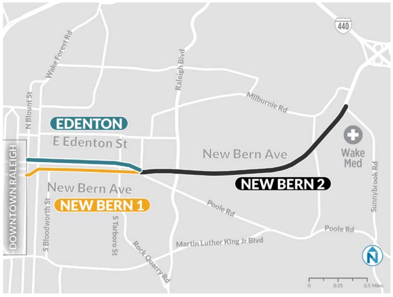 With the implementation of the 1/2 cent sales tax for transit in 2017, higher-capacity transit, among other improvements, are being planned all over the county. Along New Bern and Edenton Streets, bus-rapid transit (BRT) will be rolling through in a few years if everything stays on schedule.