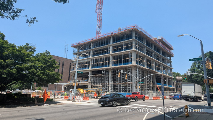I pass by this project so often and it’s followed so closely on the Community that I didn’t realize I hadn’t posted a photo of the progress here on the blog. The city’s new civic tower, at the corner of McDowell and Hargett, has a few floors assembled as we head into the summer building season. Be sure to check out some interior photos posted here on the Community, including a look at the future council chambers.
