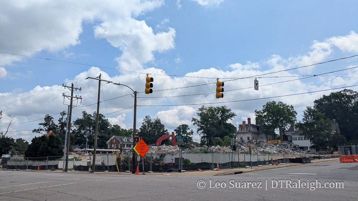 Well there goes the Bath Building. After a few months of work, the demolition of the State Government’s old space on Wilmington Street has been reduced to rubble. Now we’ll just watch it get picked up and scooped away. From what I’ve heard, the land will sit empty and hopefully just be a well-manicured lawn rather than surface parking.