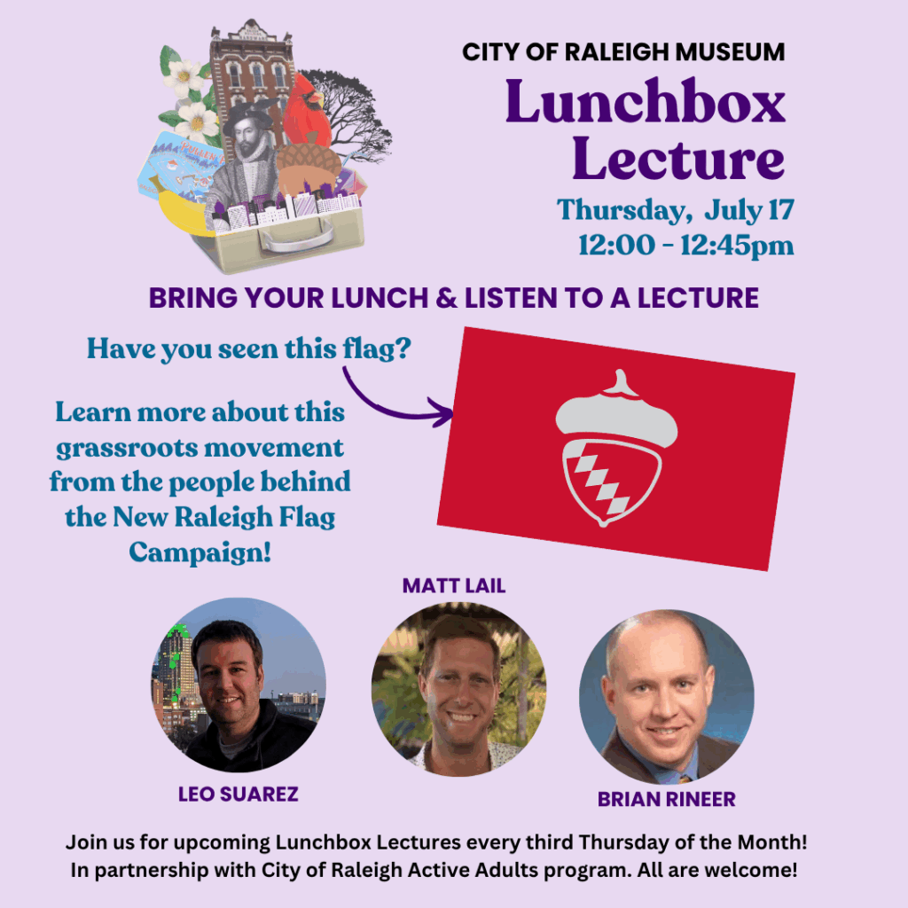 I’m pleased to join some fine folks next week as we’ll be talking about our city’s flag; past, present, and future. I hope to see some readers out there at the City of Raleigh Museum.