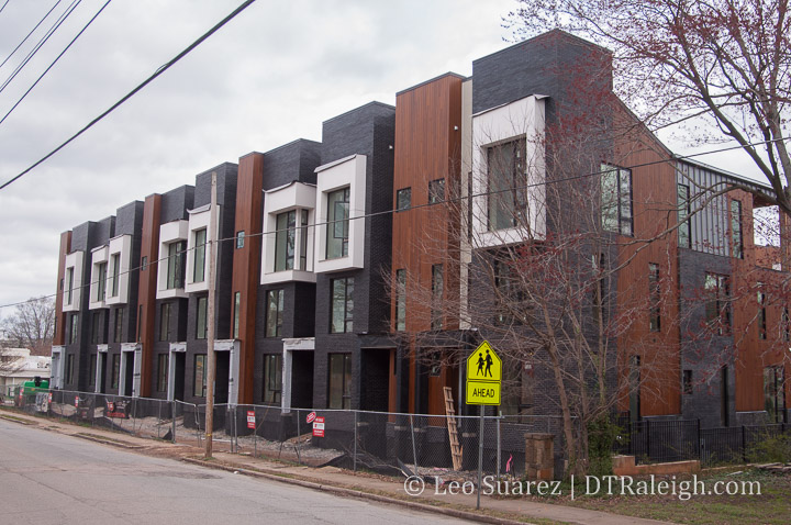 Slowly but surely, the townhomes at The Saint are starting to look finished. These beauties, shown above, along St. Mary’s look pretty much finished except for the remaining sidewalk work.