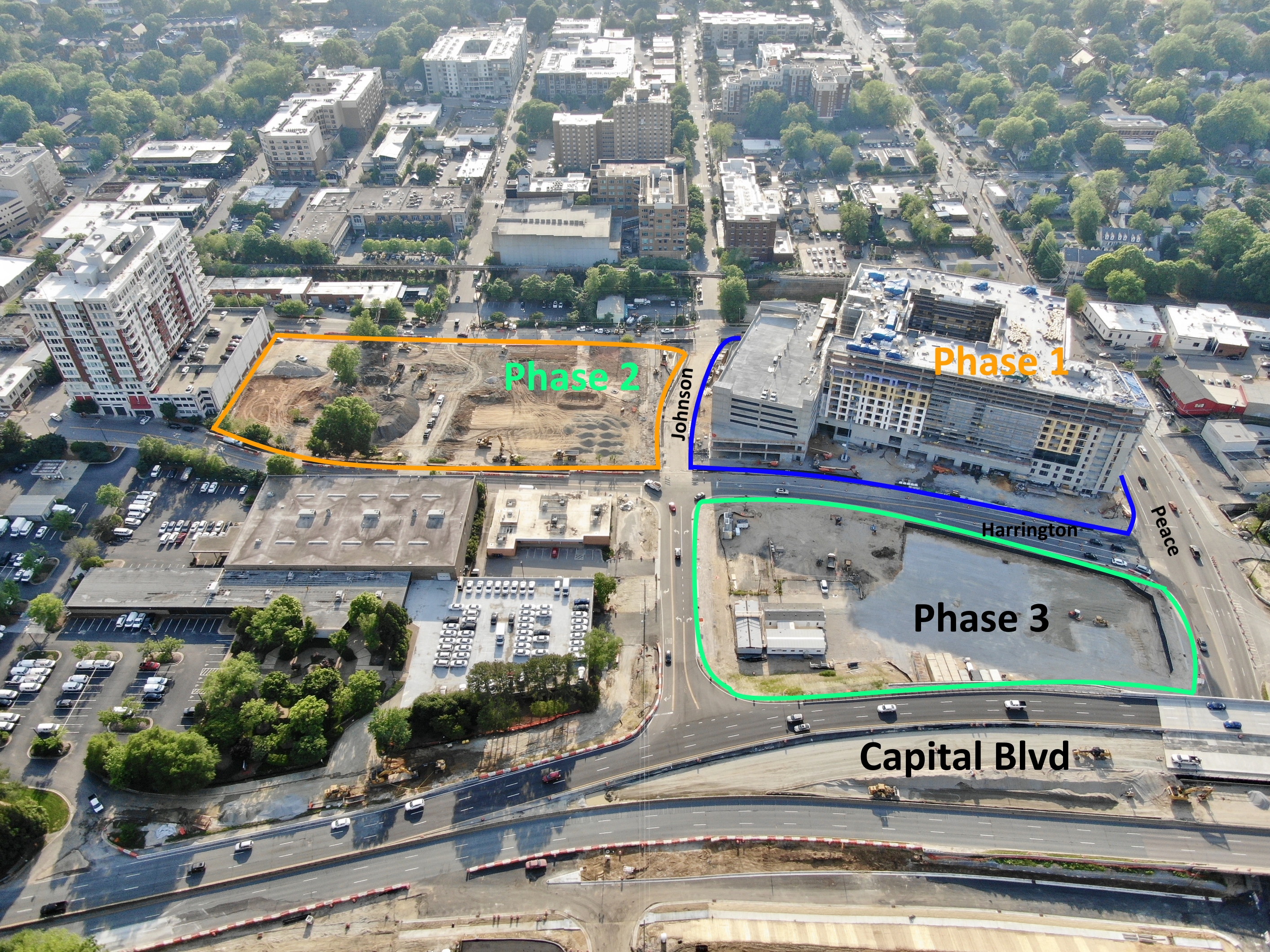 The Smokey Hollow project along Peace Street is moving right along in waves with plans for phase 3 already coming to council soon. The developers, Kane Realty, are requesting a rezoning for the site called phase 3 and the request is to increase the height limit from 12-stories or 150 feet to 40-stories or 500 feet.