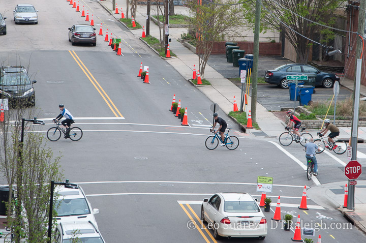 This means objectively challenging the thought that removing on-street parking will be a detriment to nearby businesses. New parking decks are popping up around downtown Raleigh so their use in addition to the loss of the few spaces per block needs to be looked at.