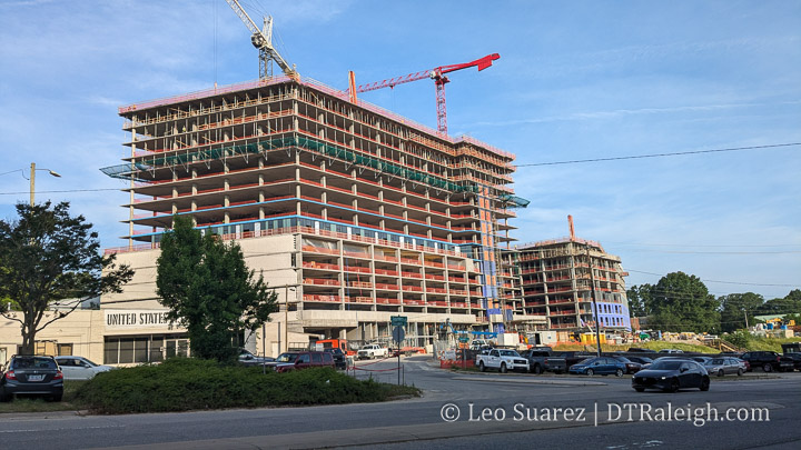 Seems like the only one building new office space in downtown is the state government. In this economy and with Raleigh having some of the highest work-from-home percentages in the country, make of that what you will. The block just north of the Nature Research Center, shown above, has been mostly cleared. The surface parking lot has been removed and all the trees are gone as construction of the North Carolina Education Campus is in its early stages.