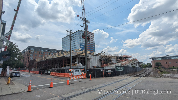 It’s not exactly a breathtaking view from the street but the Raleigh Union Station bus facility has most of the first floor poured out. Hargett Street has been closed for awhile now, and West Street is just a mess, as crews work on the future bus station that connects to the train station at Martin Street.