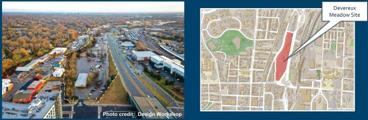 Devereux Meadow has popped in and out of the blog over the years as the site has been mentioned for future plans going back all the way to a 2011 Capital Boulevard Corridor study. That street is well documented on this site and I even have a post up about the baseball field that was built in 1938 right next to Capital. Finally, the Devereux Meadow site has been planned to become a park as part of the 2015 Downtown Plan which I covered here.
