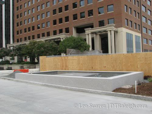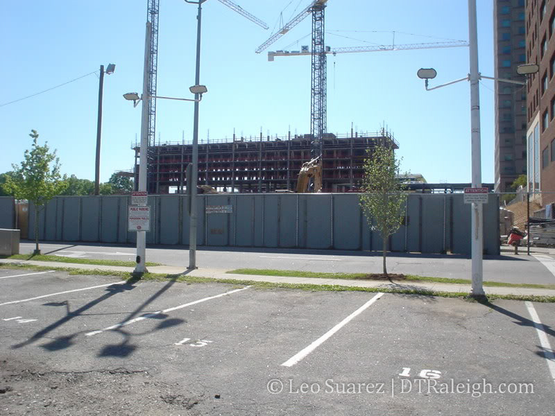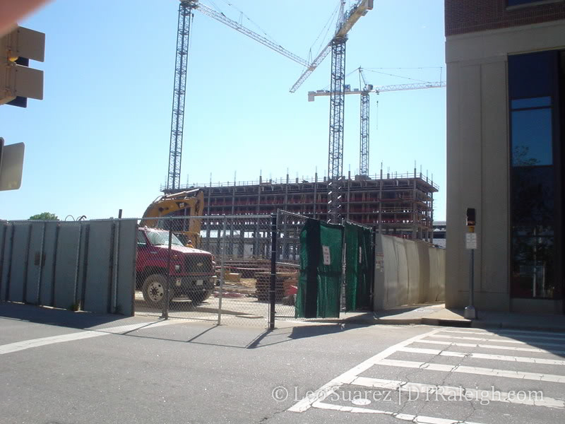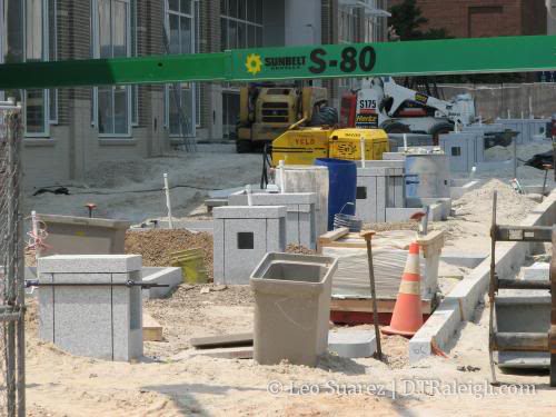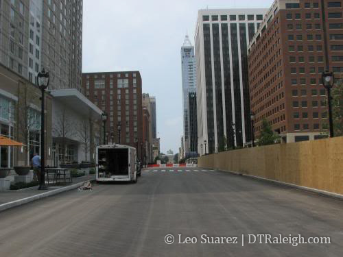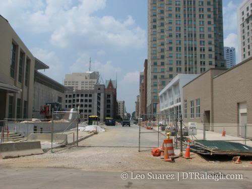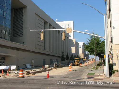 The streetlights are ready so as soon as Lenoir St. is converted to two-way mode, the hotel will be fully up and running. I’m still curious to know if traffic will flow through the future City Plaza while it is under construction. My instinct says ‘no’ and we will have to wait until Sept. 2009 until Fayetteville St. is drivable from one end to the other.