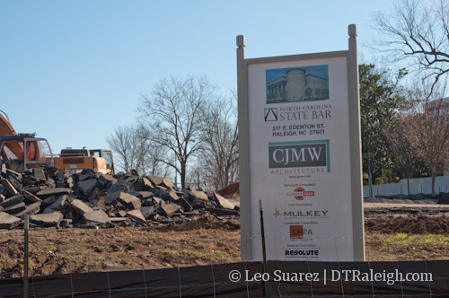 Dirt is being moved at the corner of Blount and Edenton Streets for the new headquarters of the North Carolina State Bar. The four story, 60,000 square foot building will have a classical exterior with a rotunda entrance to its lobby on the corner of the intersection. The new workplace for the Bar’s seventy-five employees will also seek a LEED silver certification.