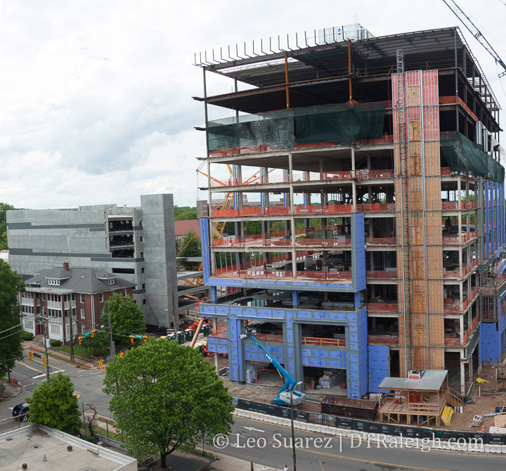 The exterior construction seems completed and if you walk the block, there’s plenty of retail space to keep things interesting. We already have spots filled in One Glenwood as they opened over a year ago. Two Hillsborough and even the parking deck across Boylan have retail spaces on the ground floor. Don’t forget about the restaurant, Good Day Good Night, in the hotel also.